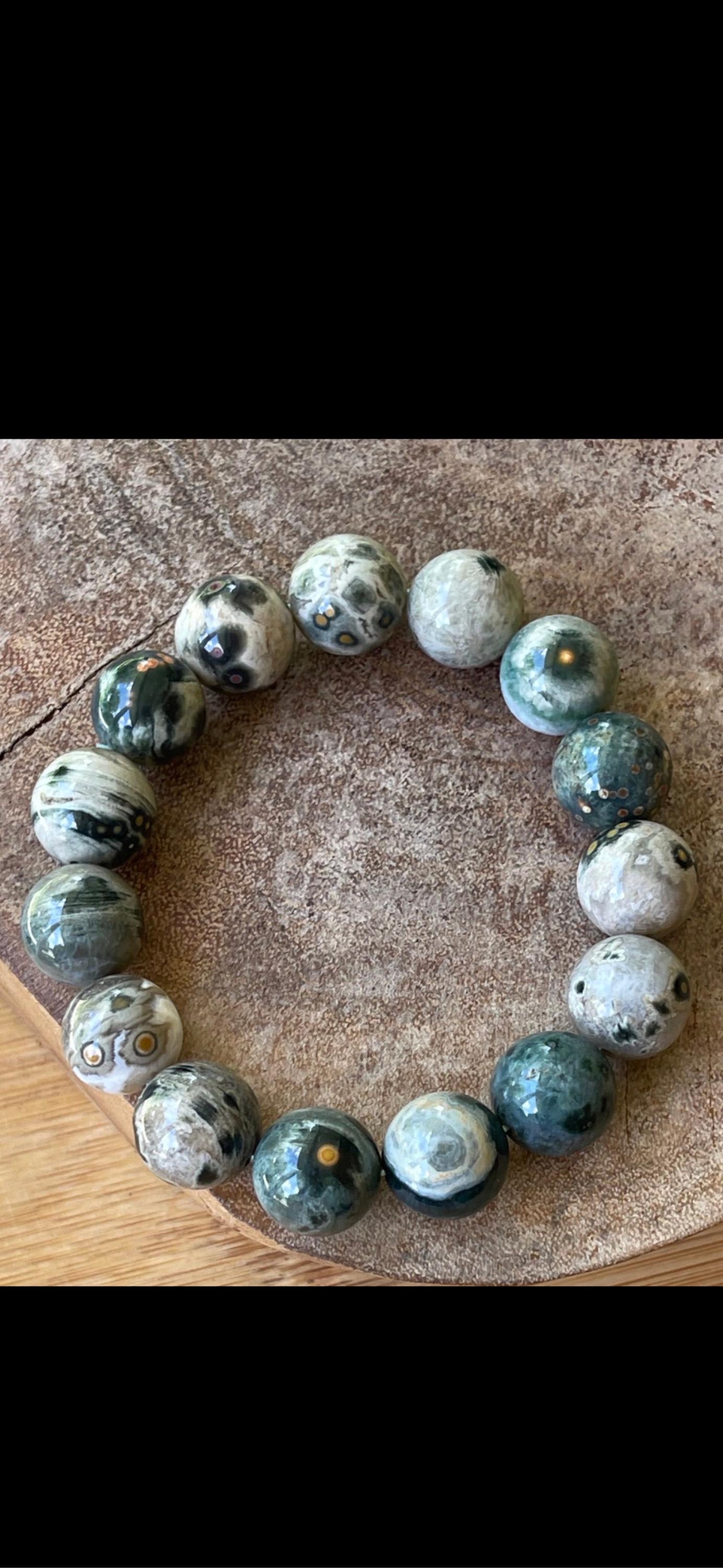 Fine Quality No longer mined Ocean Jasper Bracelet . This kind of Ocean Jasper is incredibly rare and I only have one available ! Size: Beads are 13/13.5 MM π