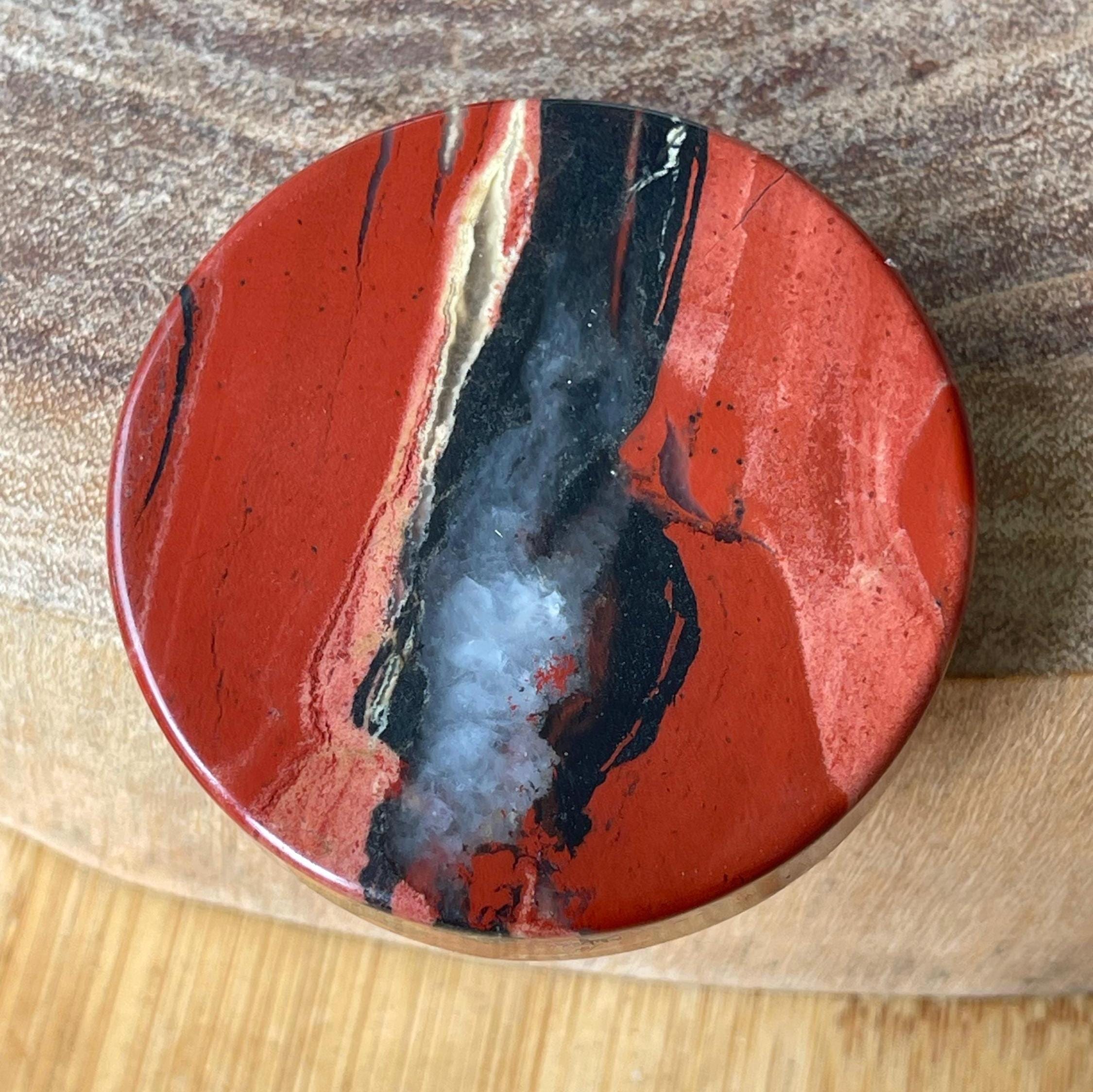 Fine Quality Red Jasper with Quartz . Approximate size 2.3 inches- SEE PICTURE FOR SIZE. π1 Pictured Crystal. Crystals are shown in Natural Lighting