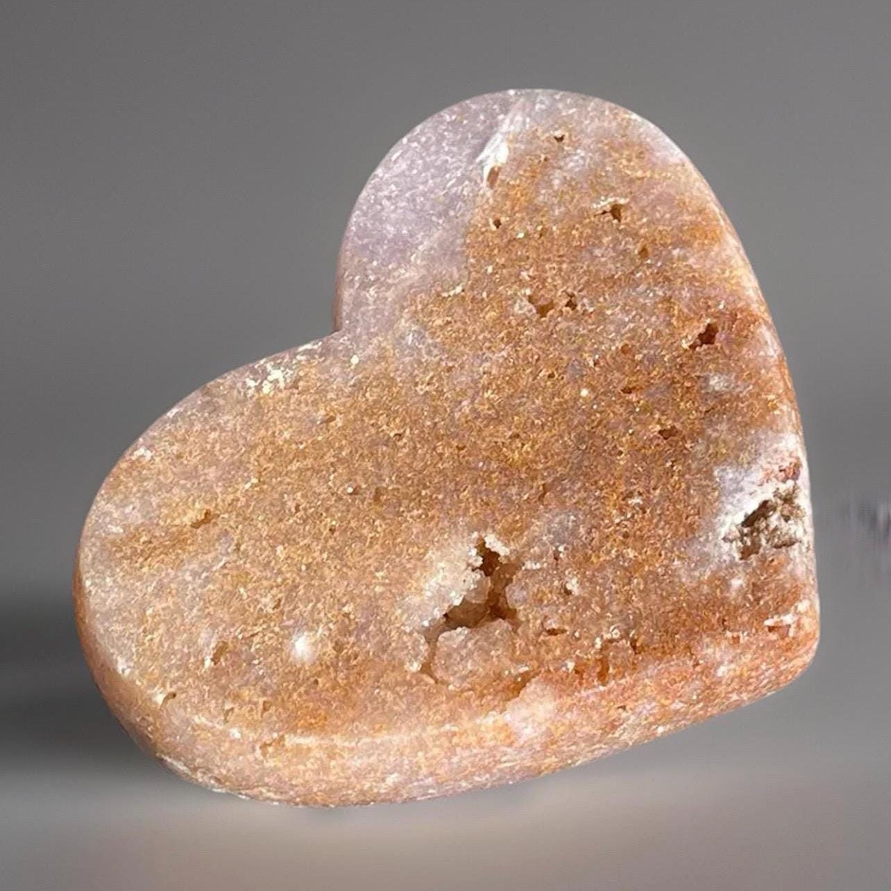 Blushing Pink Amethyst Large Heart . ➡️ Polished, Caramel and Chocolate shades throughout & Natural Druzy Pockets ➡️ You will receive 1 pictured crystal ➡️ Size: approximately - 4.4 inches wide .